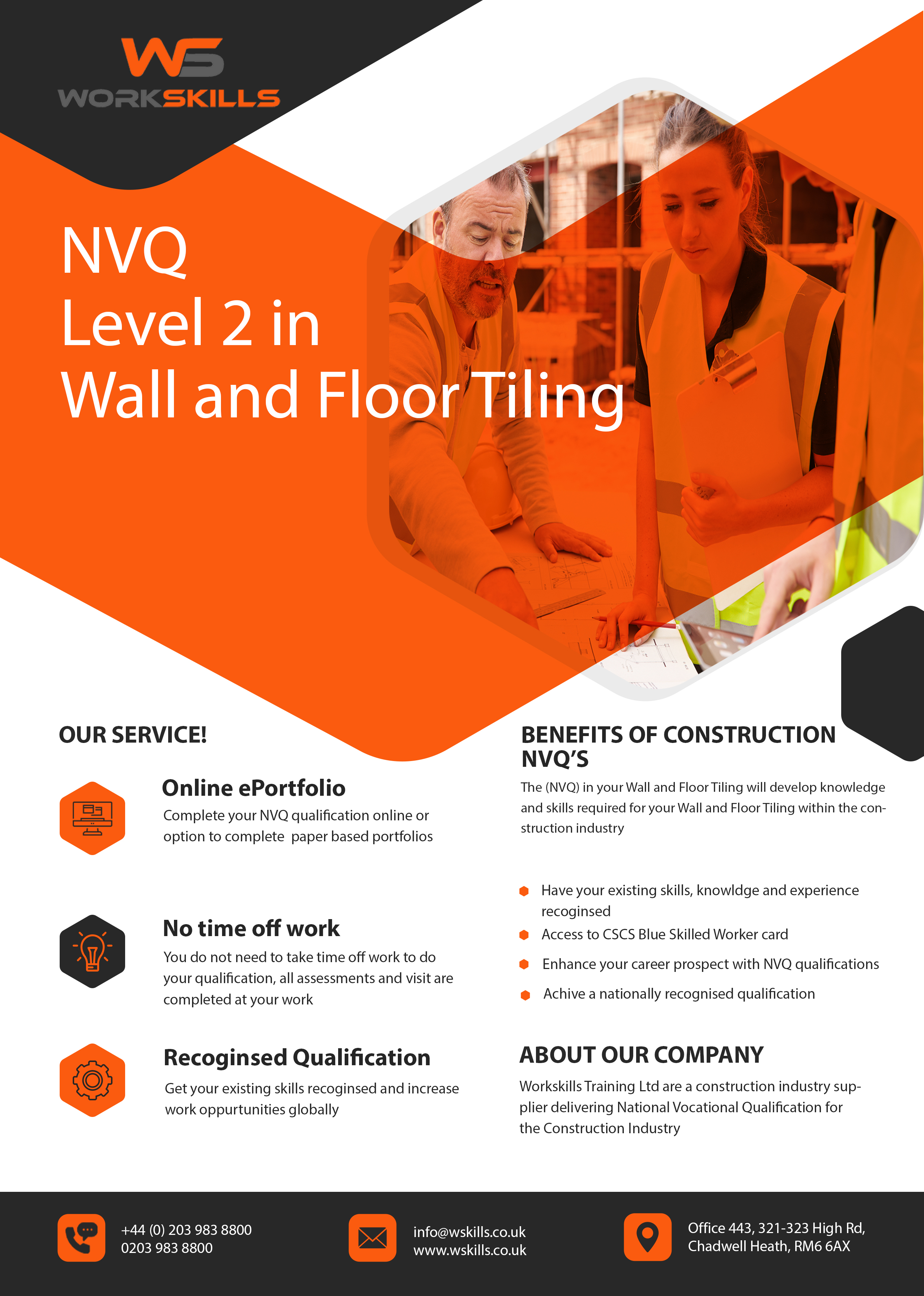 Are you ready to progress as a certified NVQ Level 2 Wall and Floor Tiling professional? For enrollment and further assistance, contact us at 0208 983 8800.